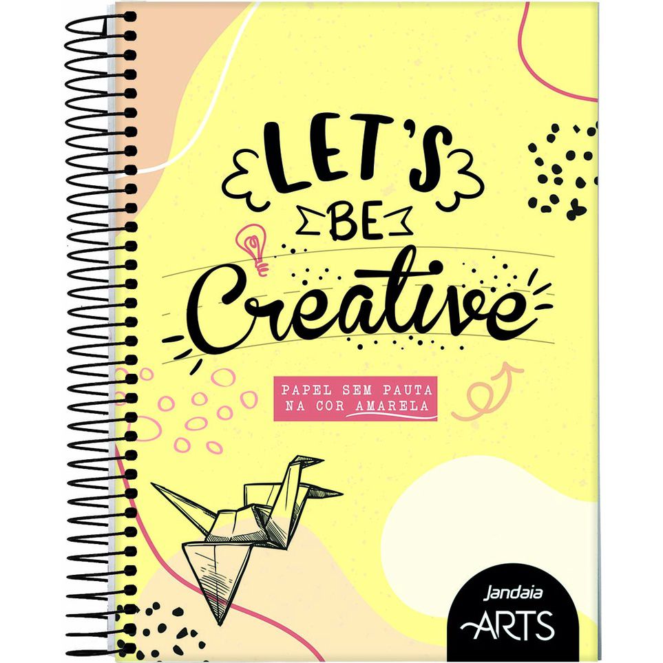 Caderno Colegial Let’s Be Creative Jandaia Arts Com as folhas sem pauta você consegue escrever, desenhar, colar adesivos e muito mais! Ideal para desenhos e textos artísticos como o Lettering, por exemplo.